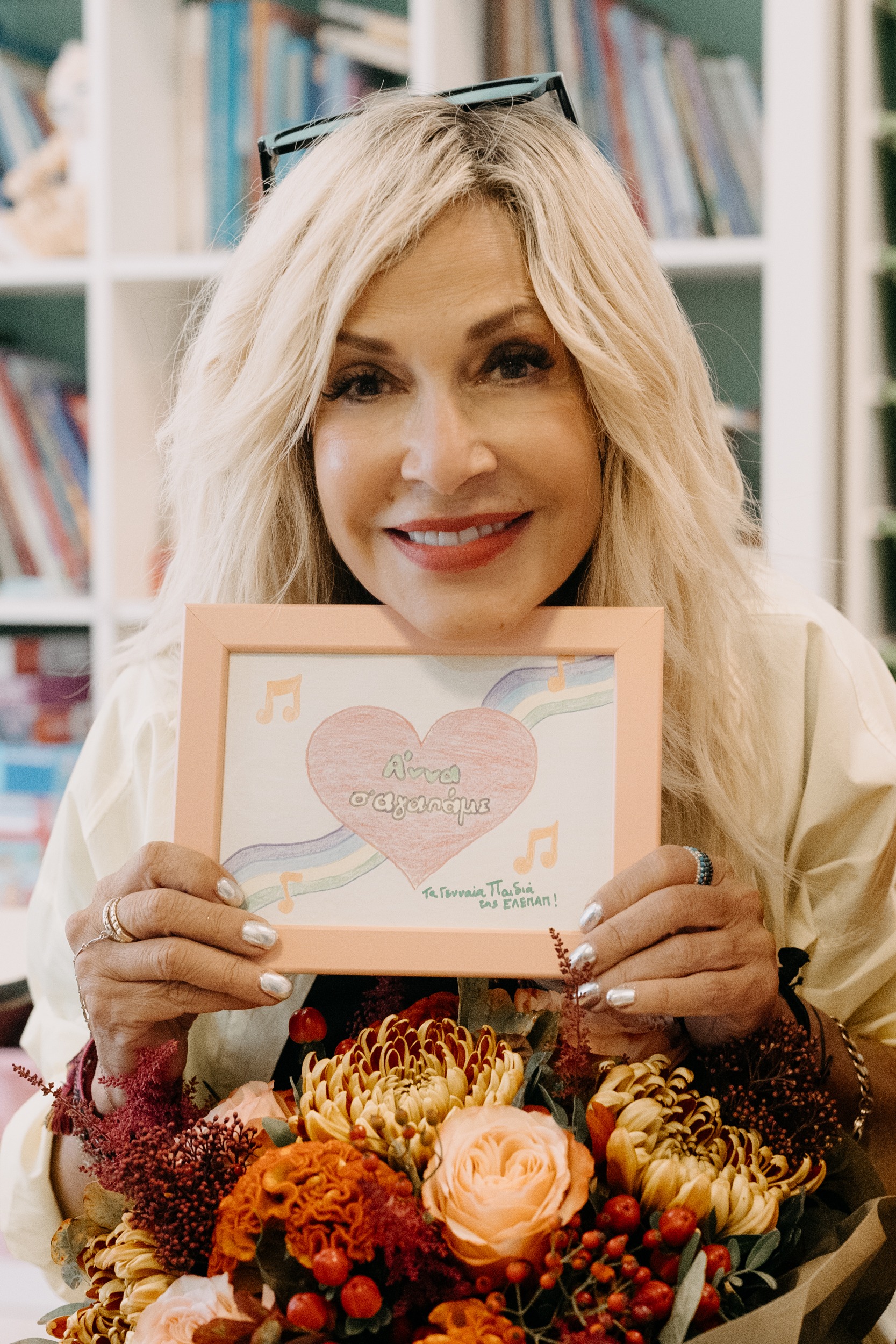Την αγαπημένη τραγουδίστρια υποδέχτηκαν η Πρόεδρος της ΕΛΕΠΑΠ Δρ. Ελένη Σκουτέλη και το τακτικό μέλος του Δ.Σ., κ. Έτα Παγίδα – Σαμαρά.