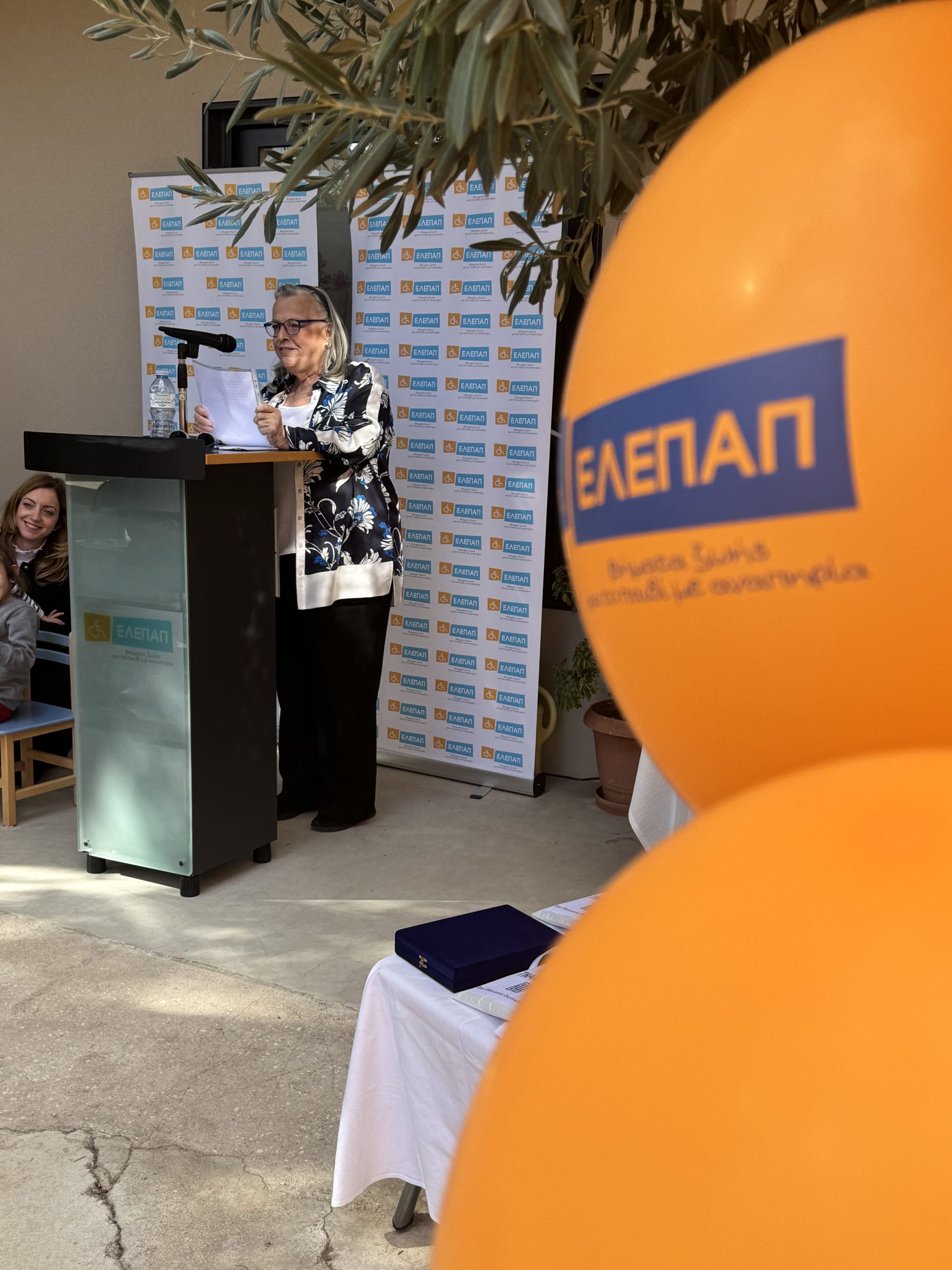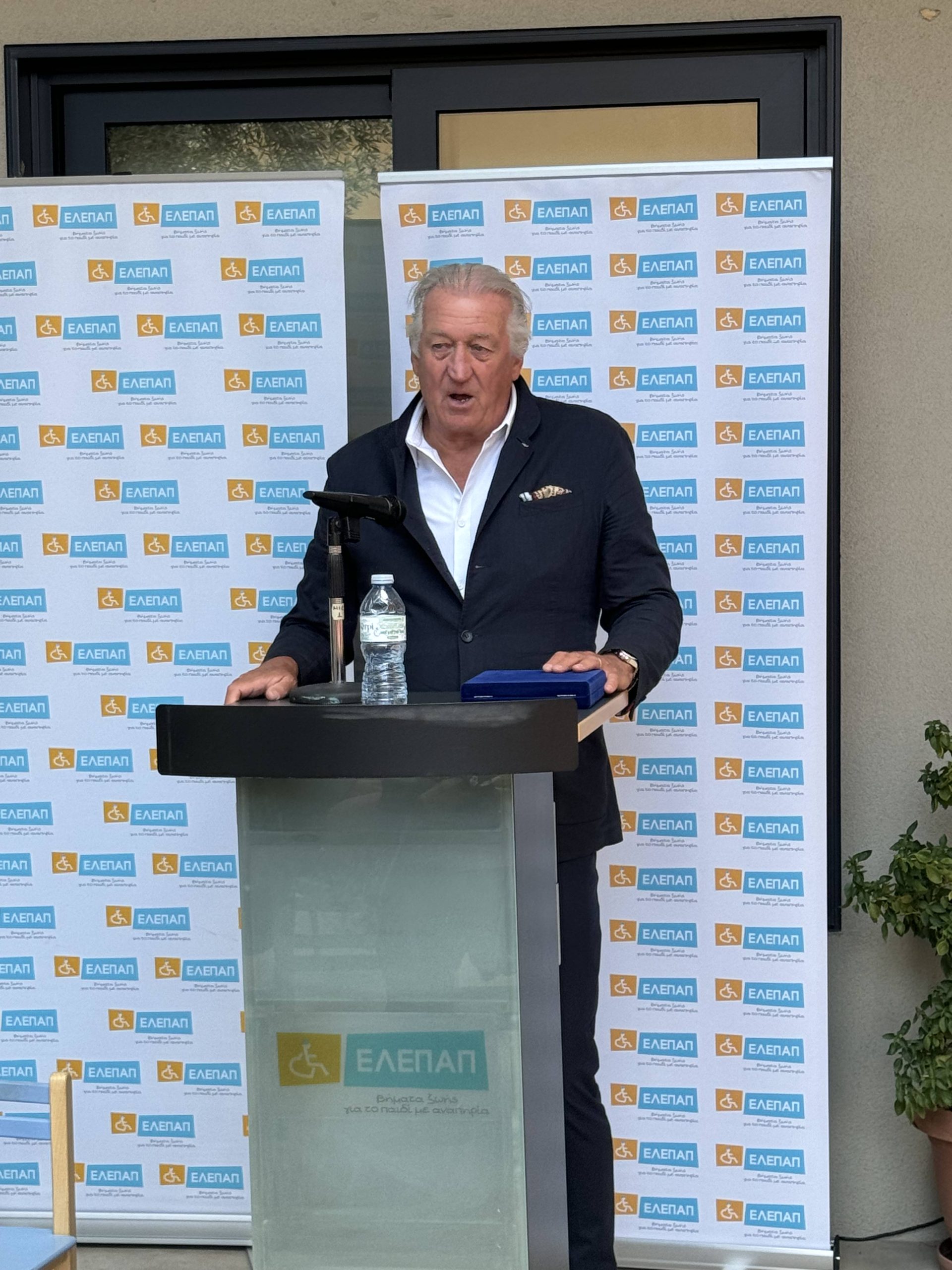 Ο κύριος Jeremy Downward, μέλος του Διοικητικού Συμβουλίου του THI, παρέλαβε τιμητική πλακέτα από την Πρόεδρο της ΕΛΕΠΑΠ, Δρ. Ελένη Ν.Σκουτέλη , η οποία μεταξύ άλλων τόνισε: “Θα ήθελα να εκφράσω ένα τεράστιο ευχαριστώ για τη γενναιόδωρη δωρεά του The Hellenic Initiative. Η εμπιστοσύνη και η υποστήριξη του The Hellenic Initiative αποτελεί μεγάλη τιμή για την ΕΛΕΠΑΠ και ουσιαστική αναγνώριση του σημαντικού έργου ζωής που επιτελεί με συνέπεια, για περισσότερα από 87 χρόνια, για την υποστήριξη των ατόμων με αναπηρία στην Ελλάδα”.