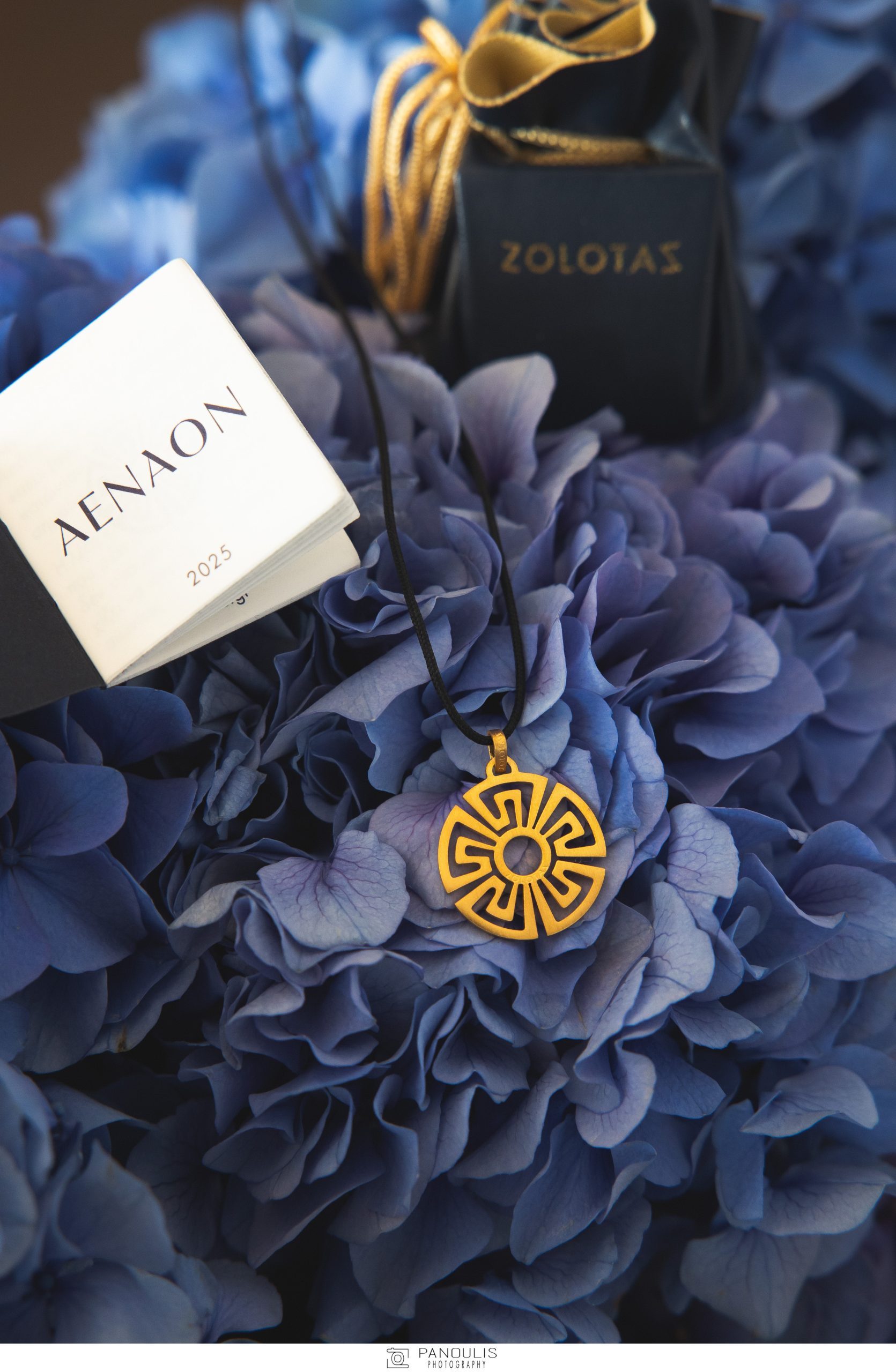 Για το νέο έτος, ο Οίκος ZOLOTAS εξερευνά τη ρέουσα κίνηση του Μαιάνδρου και επανασχεδιάζει τις κλασικές του γραμμές με σύγχρονη προσέγγιση. Πέντε αλληλένδετα κύματα, συμβολίζουν την αρμονία, την αδιάκοπη εξέλιξη και τη φυσική ισορροπία. Καθώς το 2025 ο Οίκος γιορτάζει 130 χρόνια ιστορίας και δημιουργικής πορείας, το Γούρι «ΑΕΝΑΟΝ» τιμά με τον μοναδικό συμβολισμό του τη σημαντική αυτή επέτειο. Η συλλογή αποτελεί μια σύγχρονη αφήγηση για την αδιάκοπη κίνηση της δημιουργικότητας, όπως αυτή αποτυπώνεται στο λαμπερό ταξίδι του Οίκου στον χρόνο.