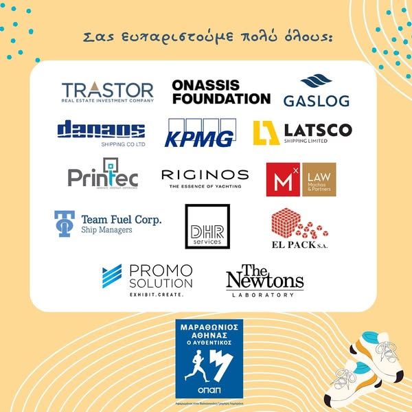 Ένα μεγάλο «ευχαριστώ» τους δρομείς του #TeamELEPAP, και συγκεκριμένα στις εταιρίες: TRASTOR REIC, Onassis Foundation , Gasloglng, Danaos Shipping Co. Ltd., KPMG Greece, Latsco Shipping Limited, Printec Group, Riginos yachts, Machas & Partners Law Firm, Teamfuel corp ,DHR Services & El Pack Group!