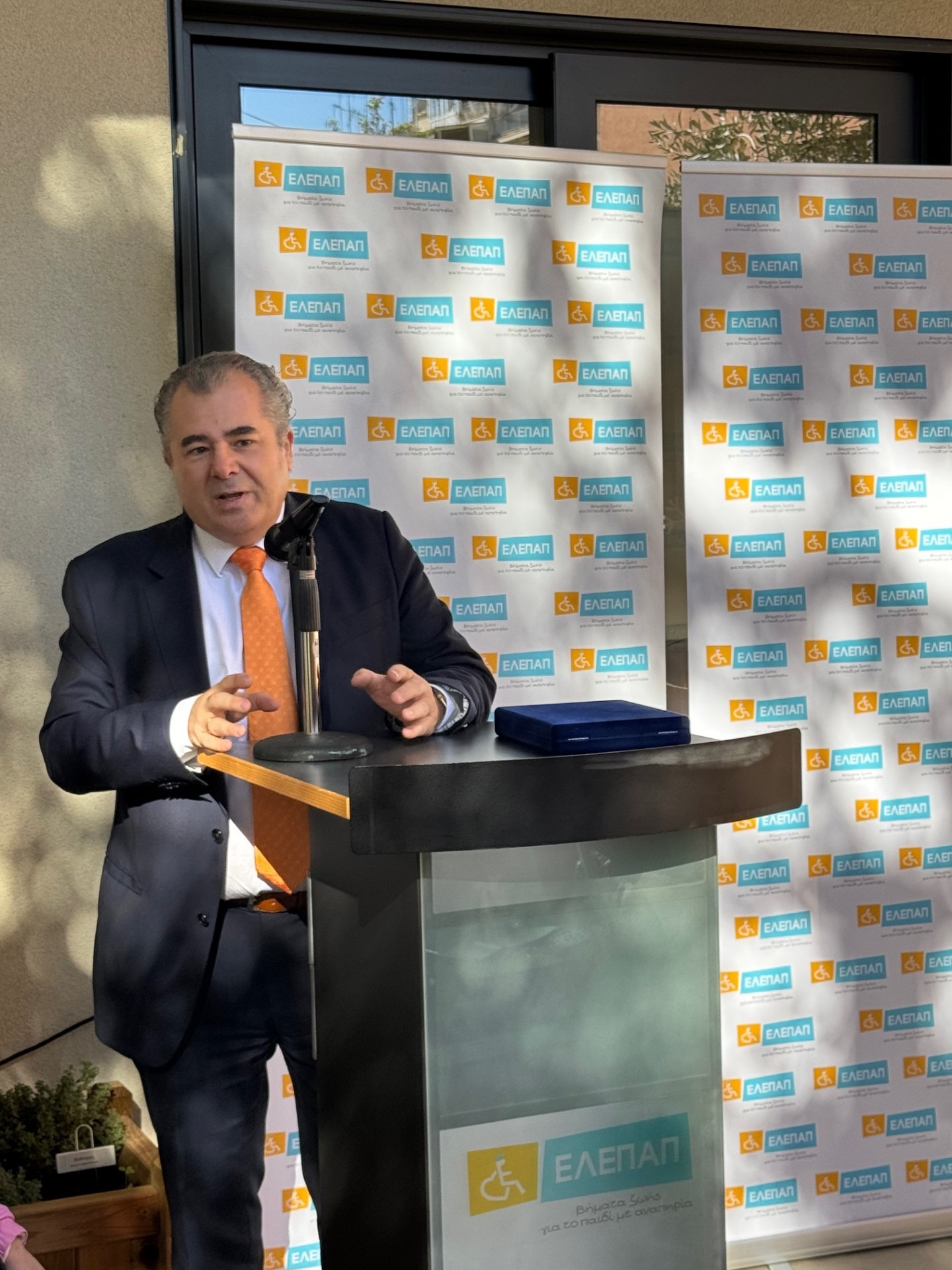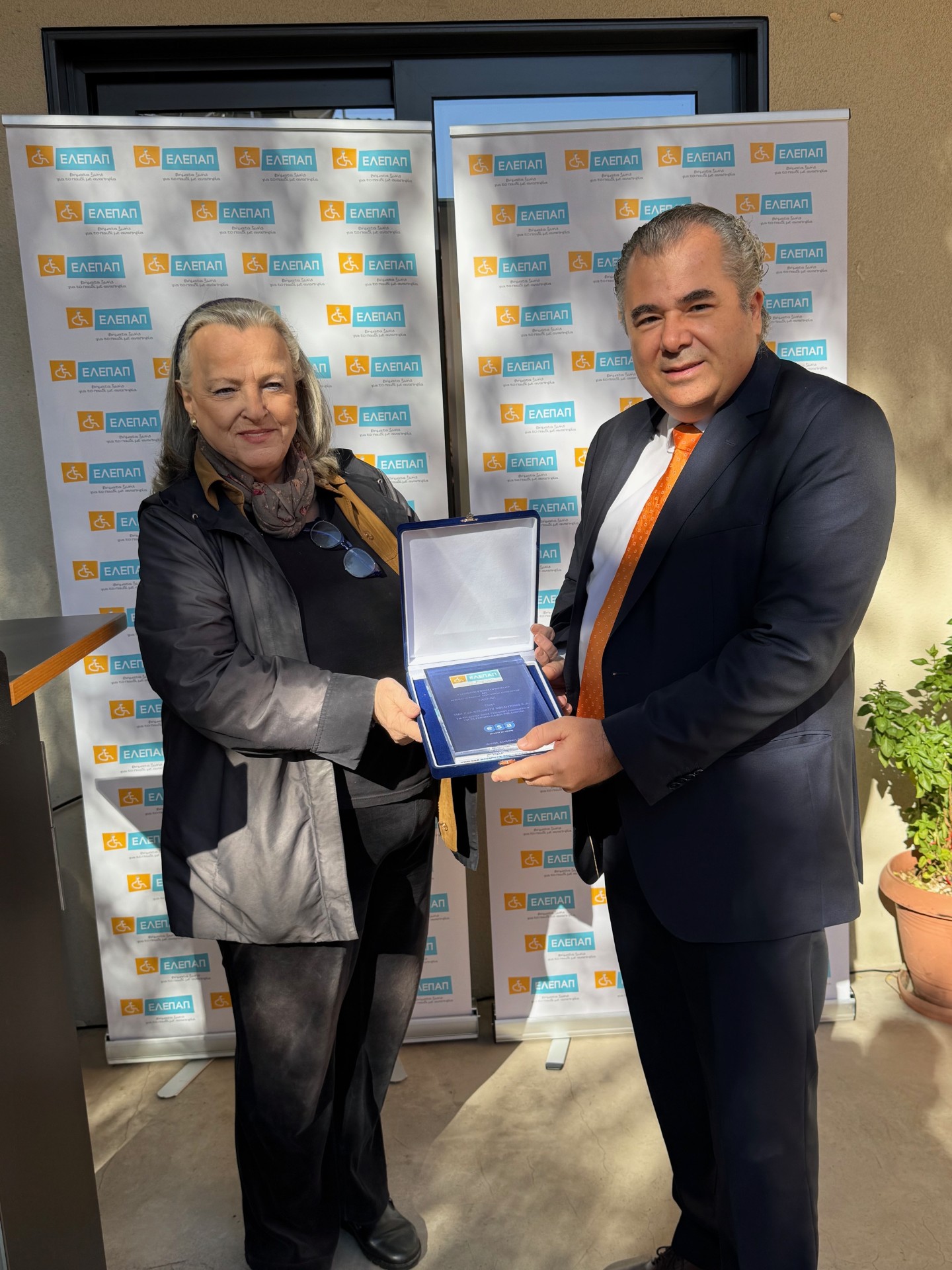 Η Πρόεδρος της ΕΛΕΠΑΠ, Παιδονευρολόγος Δρ. Ελένη Ν. Σκουτέλη, ευχαρίστησε θερμά τον CEO της ESA Security Solutions, κ. Γιώργο Μαθιό, και τη Γενική Διευθύντρια Ανθρώπινου Δυναμικού κα Μαρία Μιχαήλη, για την τόσο σημαντική δωρεά της ESA και τους παρέδωσε τιμητική, αναμνηστική πλακέτα.