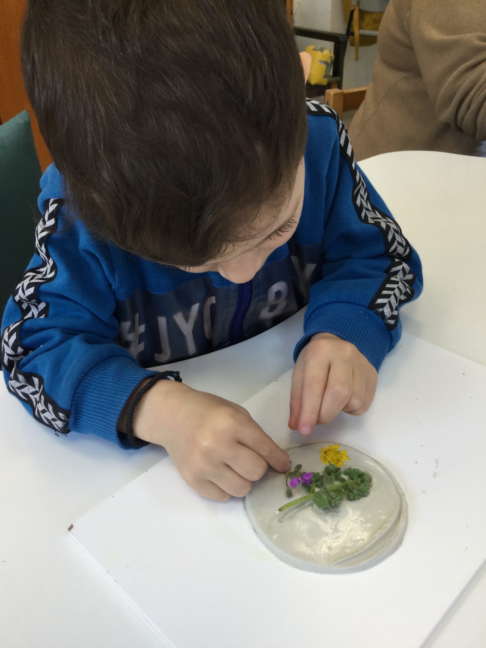 Έπειτα από την ολοκλήρωση της συλλογής λουλουδιών, διάλεξαν τα λουλούδια της αρεσκείας τους και τα τοποθέτησαν επάνω στην βάση πηλού, την οποία είχαν σχηματίσει.