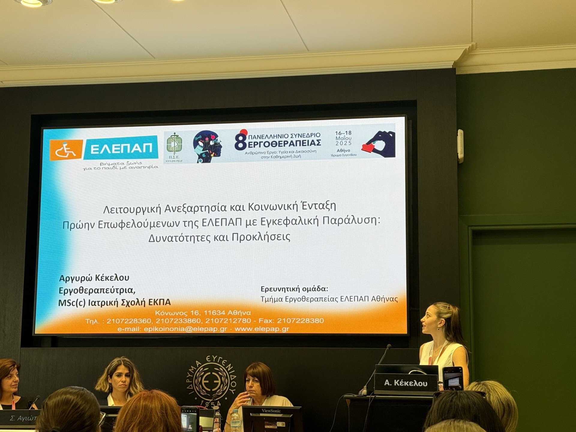 Με μεγάλη μας χαρά παρουσιάσαμε Προφορική Ανακοίνωση με θέμα: «Λειτουργική Ανεξαρτησία και Κοινωνική Ένταξη Πρώην Επωφελούμενων της ΕΛΕΠΑΠ με Εγκεφαλική Παράλυση: Δυνατότητες και Προκλήσεις» με ομιλήτρια την κυρία Αργυρώ Κέκελου, OT, MSc (c).