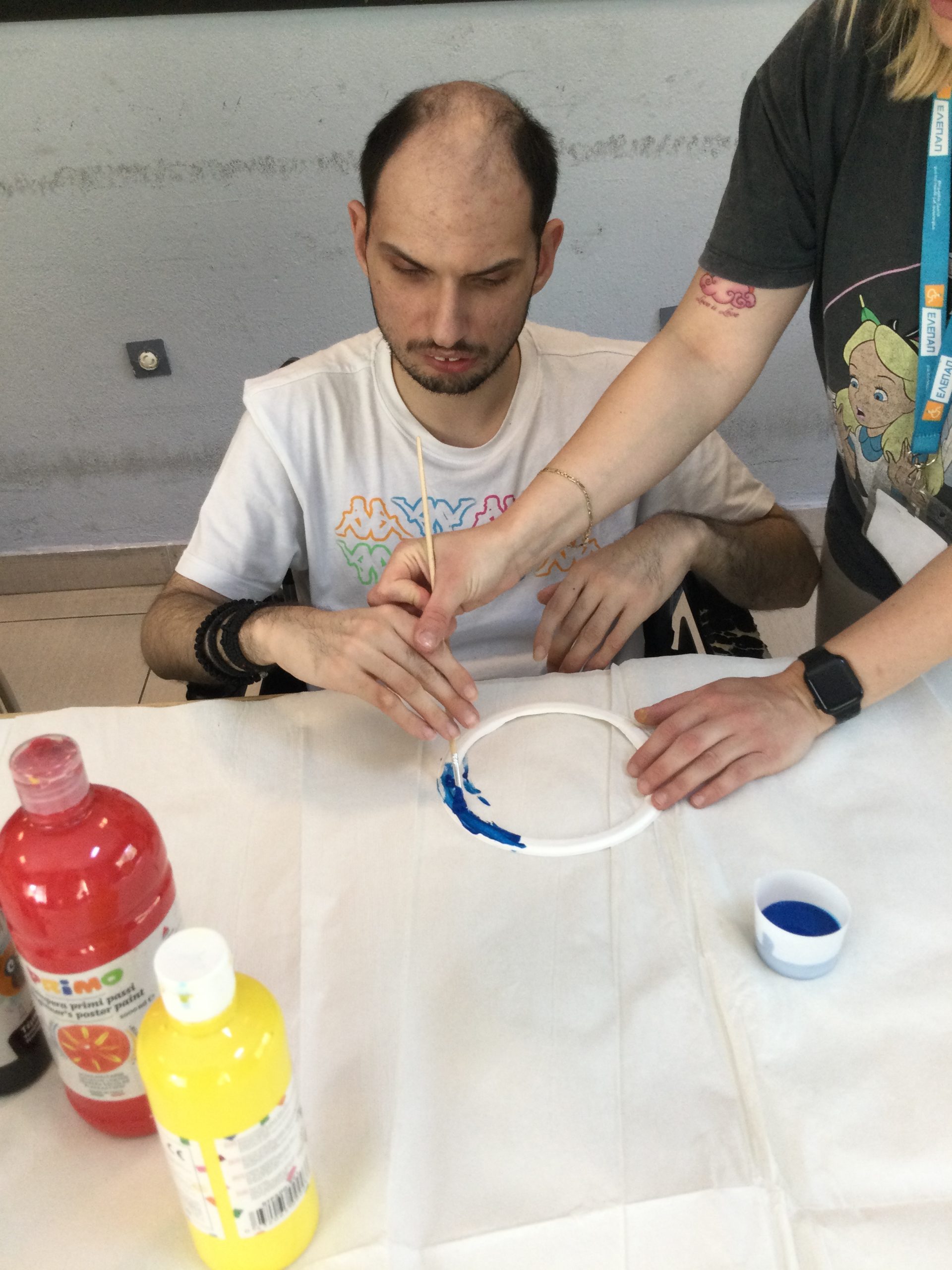 Από την άλλη, οι ενήλικες του ΚΔΗΦ αφού συζήτησαν για τους Ολυμπιακούς Αγώνες και την ιστορία τους, συνεργάστηκαν για να κατασκευάσουν το εμβληματικό σήμα των Ολυμπιακών Αγώνων.