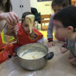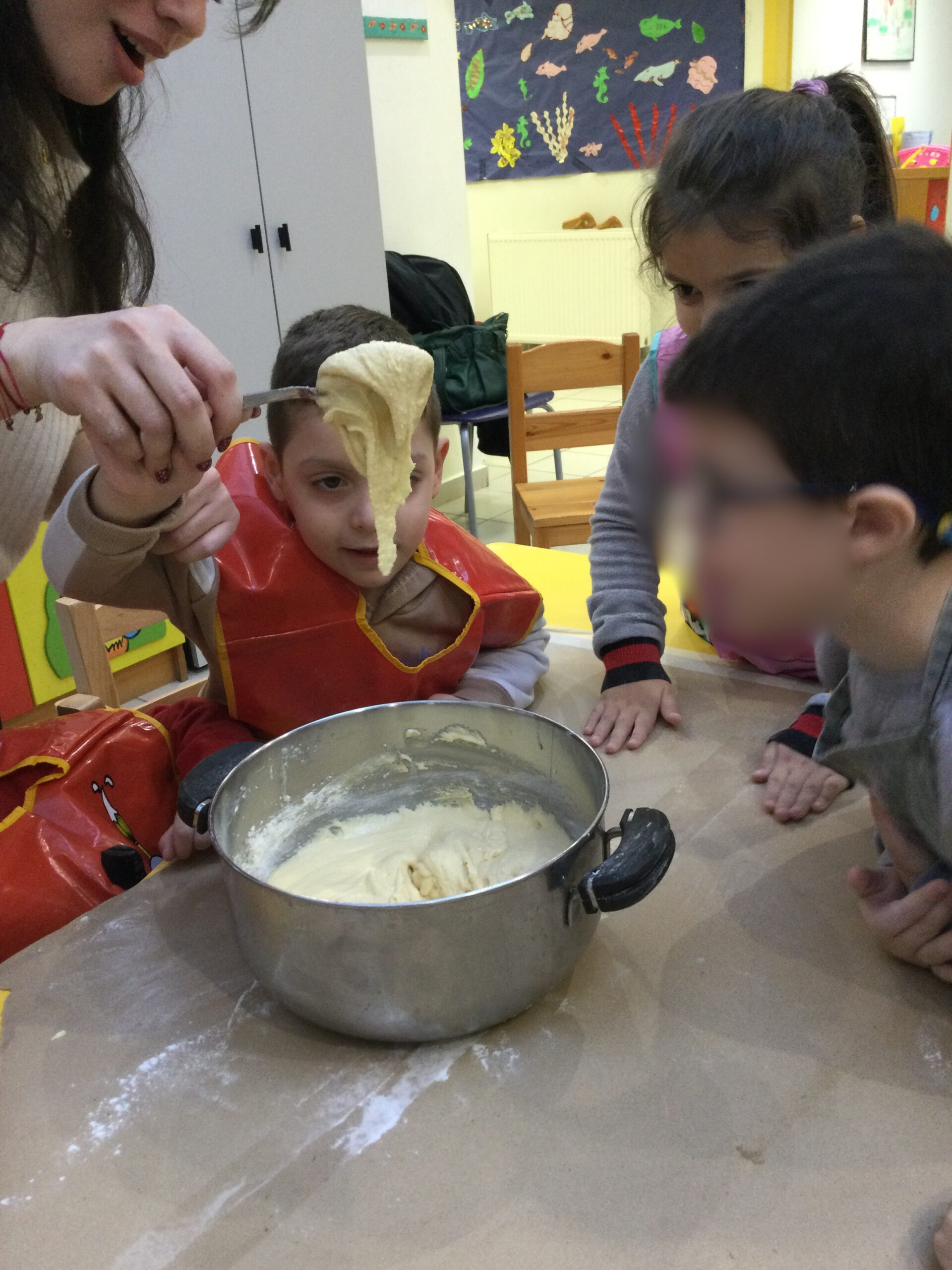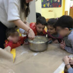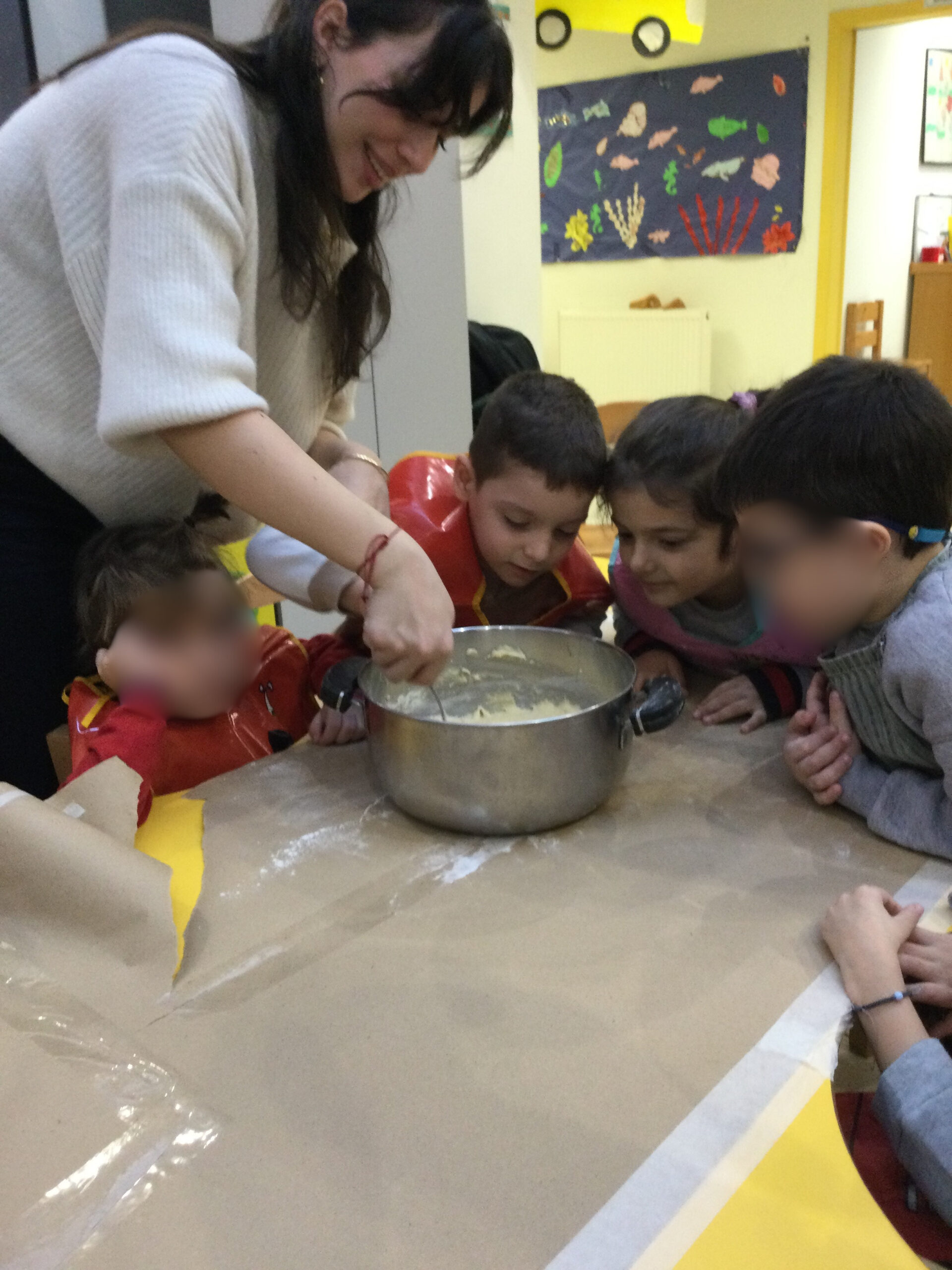 Τα παιδιά μας, με τη βοήθεια των παιδαγωγών τους, μεταμορφώθηκαν σε μικρούς ζαχαροπλάστες και με μεγάλο ενθουσιασμό και υπομονή, έφτιαξαν τα δικά τους χριστουγεννιάτικα μπισκότα.